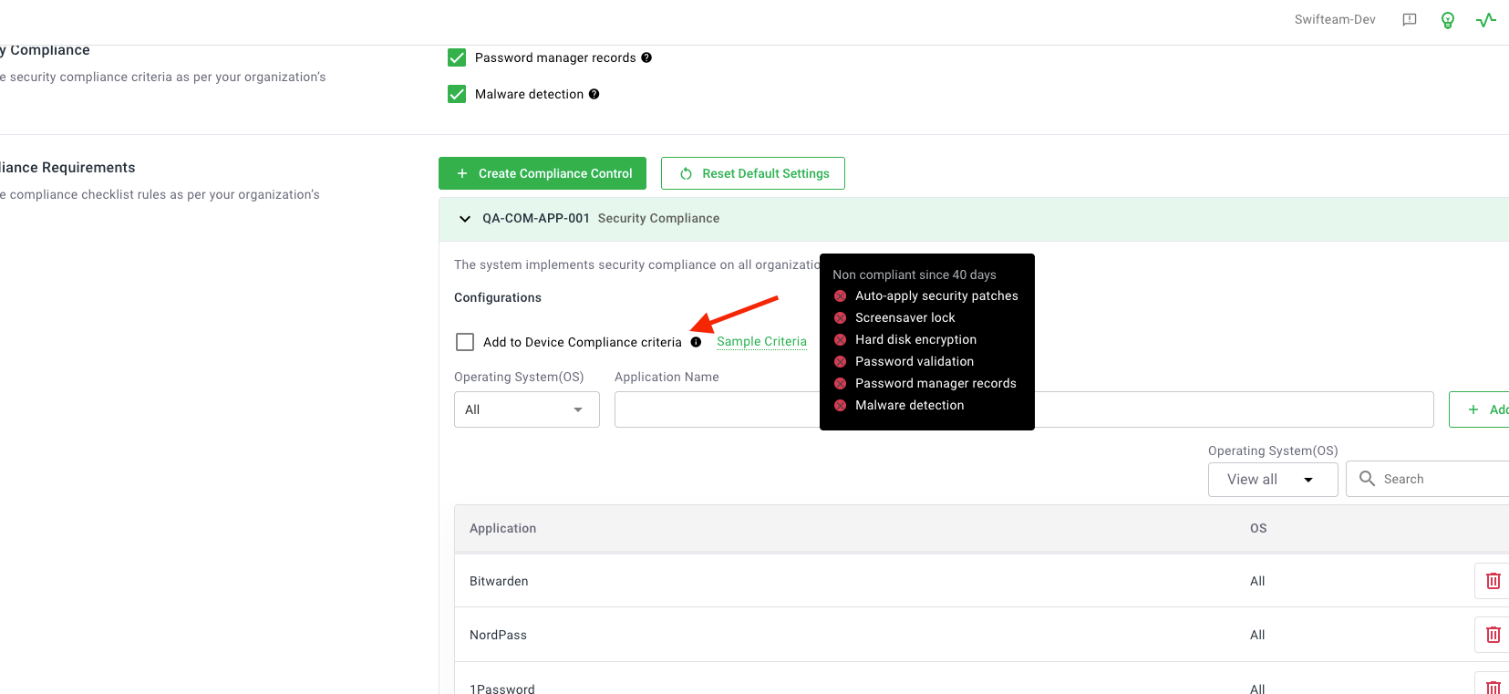 Add "Add to Device Compliance Status" Option
