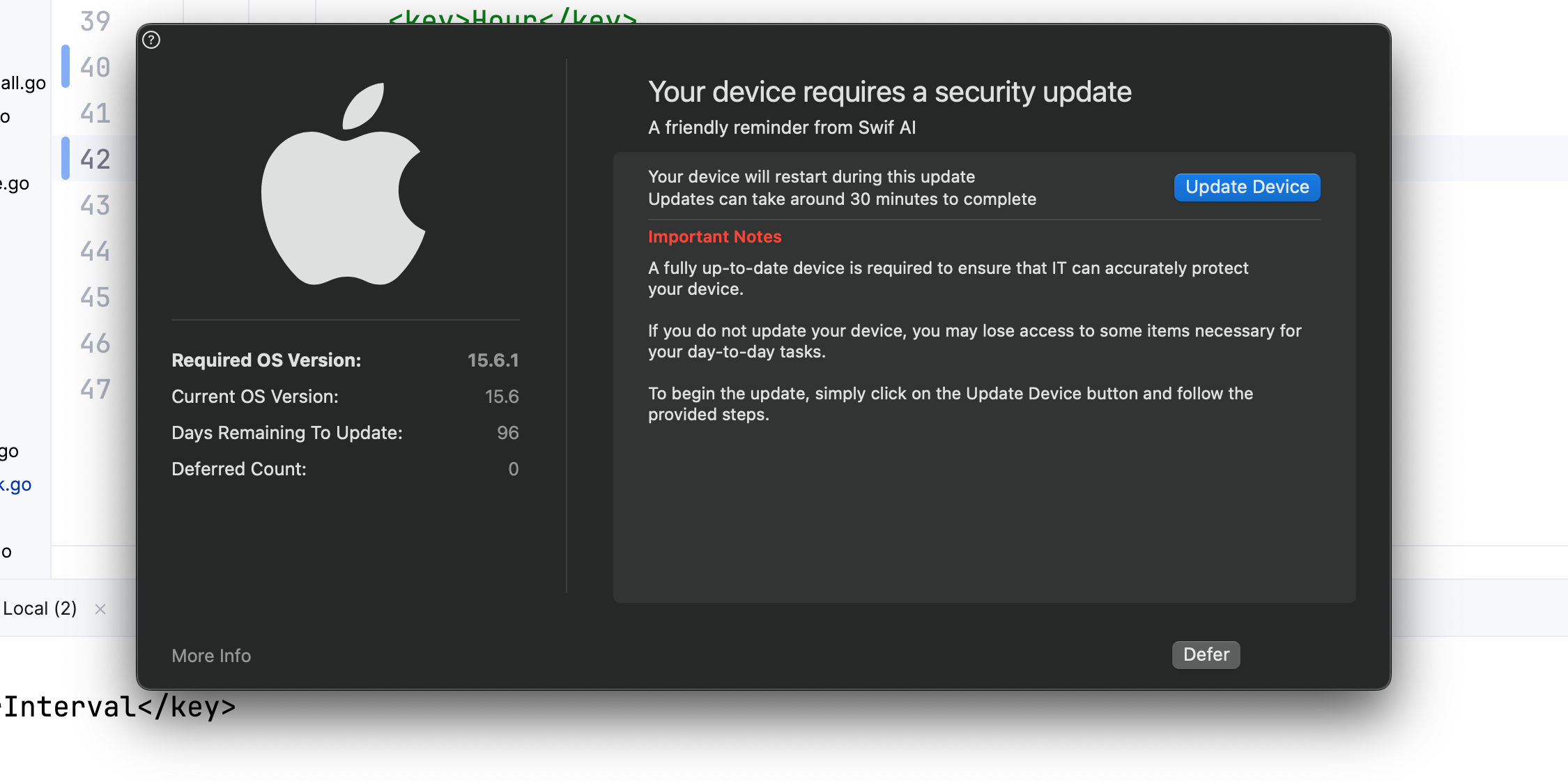 Purpose: Integrates the Nudge app into the Mac Software Update Policy to notify users about important security OS updates.
