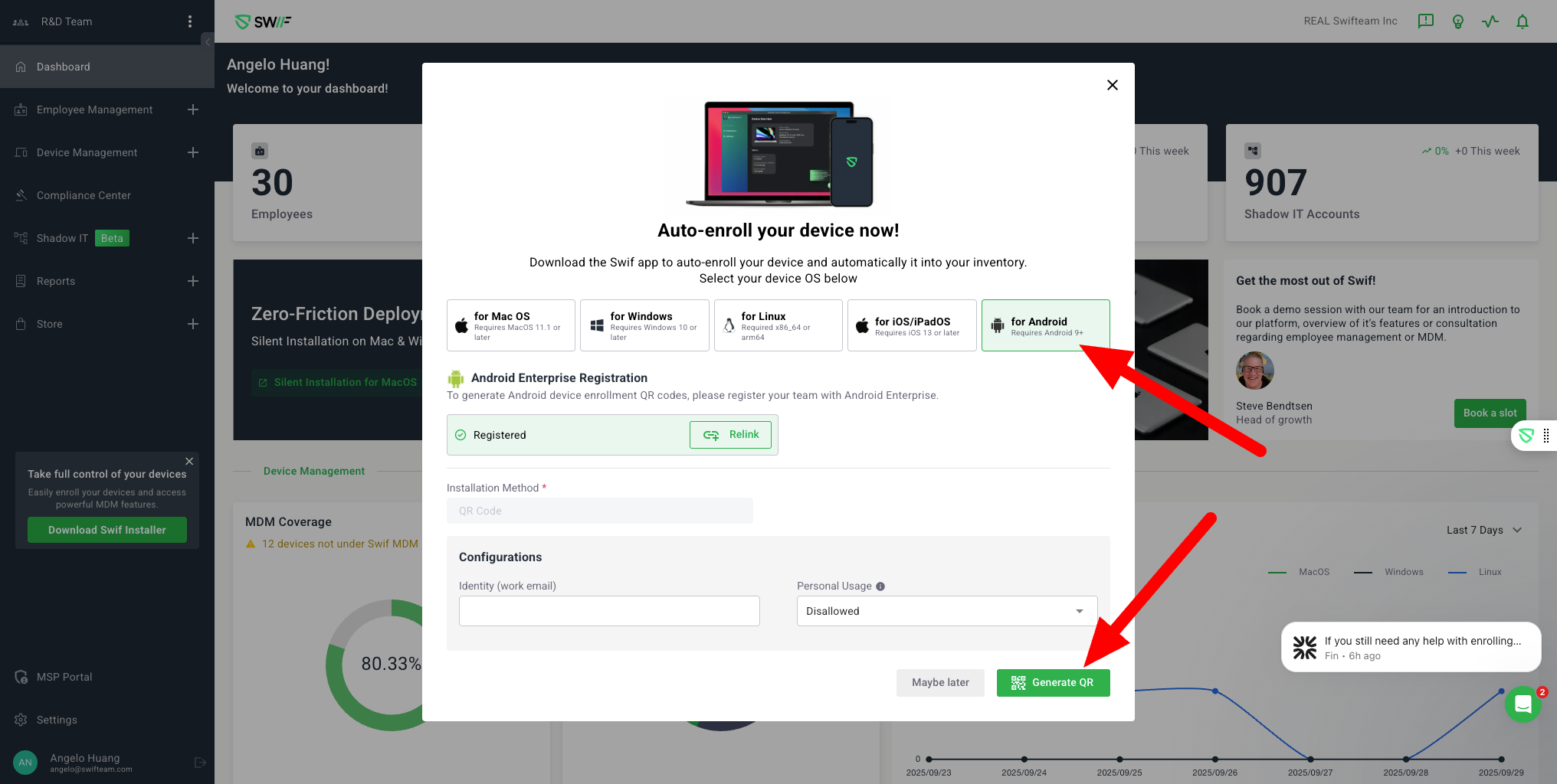 We’re excited to announce support for Android device management! Organizations can now securely enroll, configure, and manage Android devices—whether company-owned or BYOD (Bring Your Own Device)—directly through Swif.
