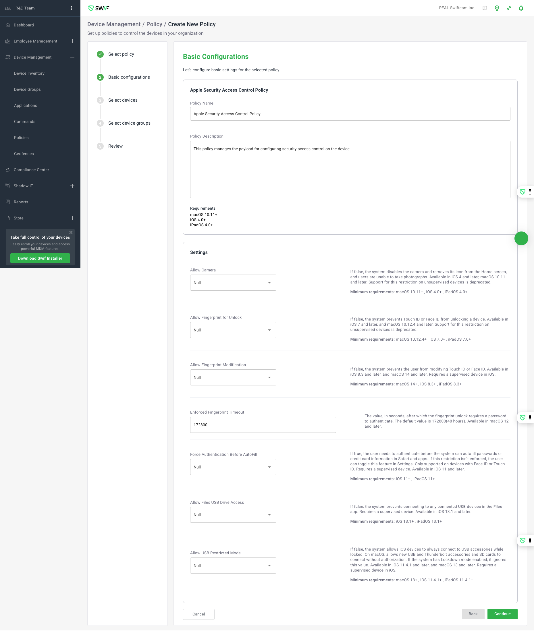 The key features of the Security Access Control Policy are as follows: