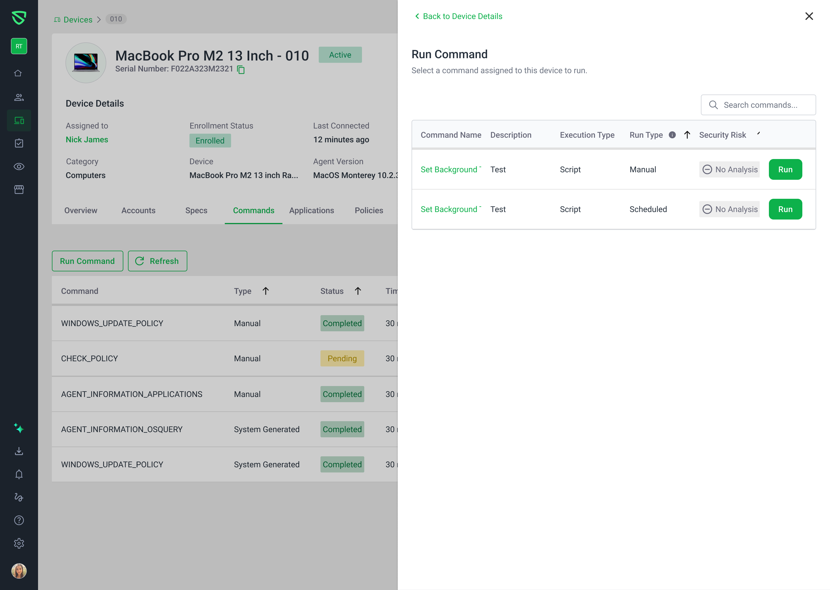Added a Run Command button under the Commands tab on each device’s details page.