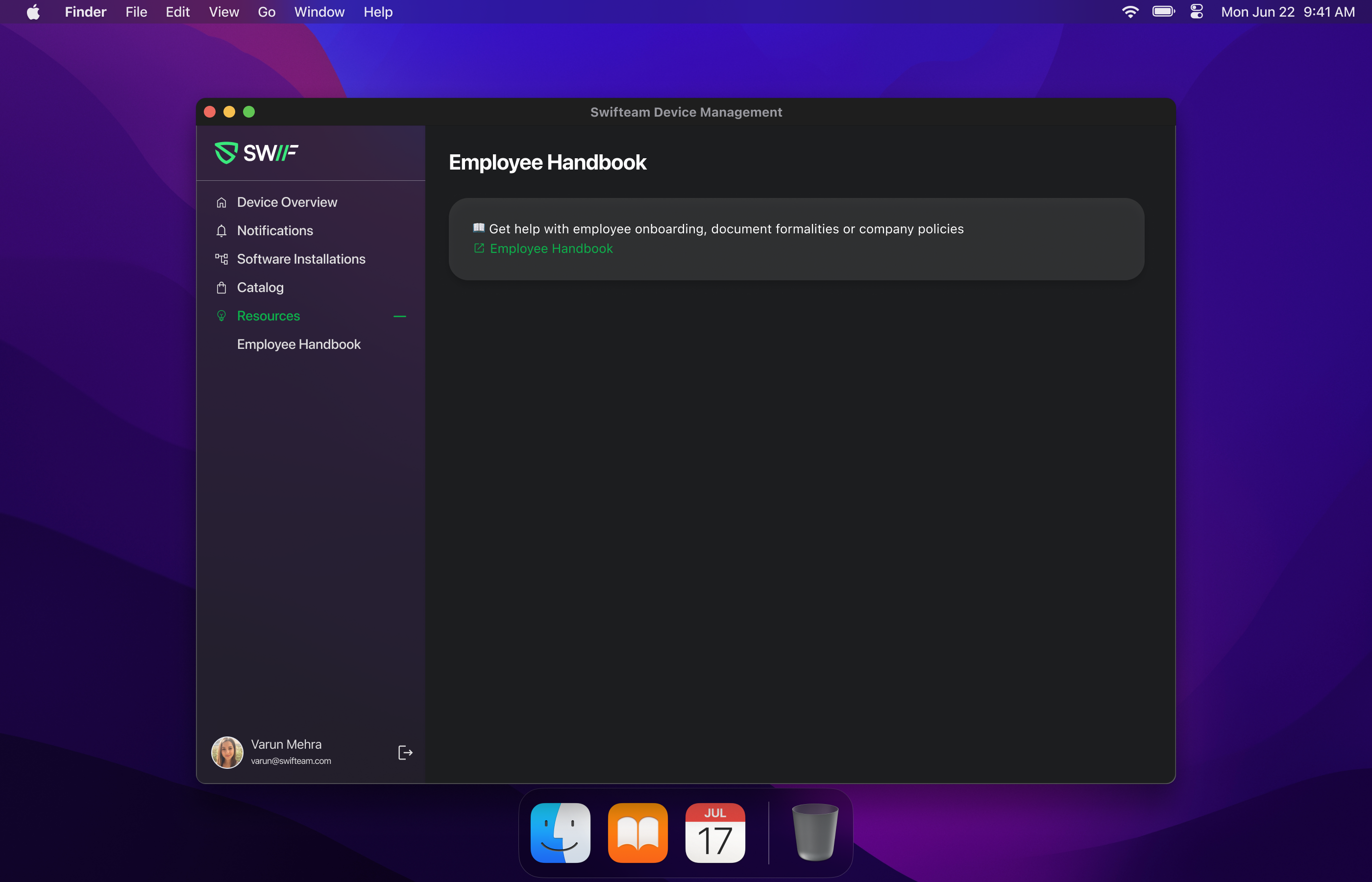 Admins can now add custom company resources — such as support portals, employee handbooks, internal wikis, and more — directly into the Swif desktop app.