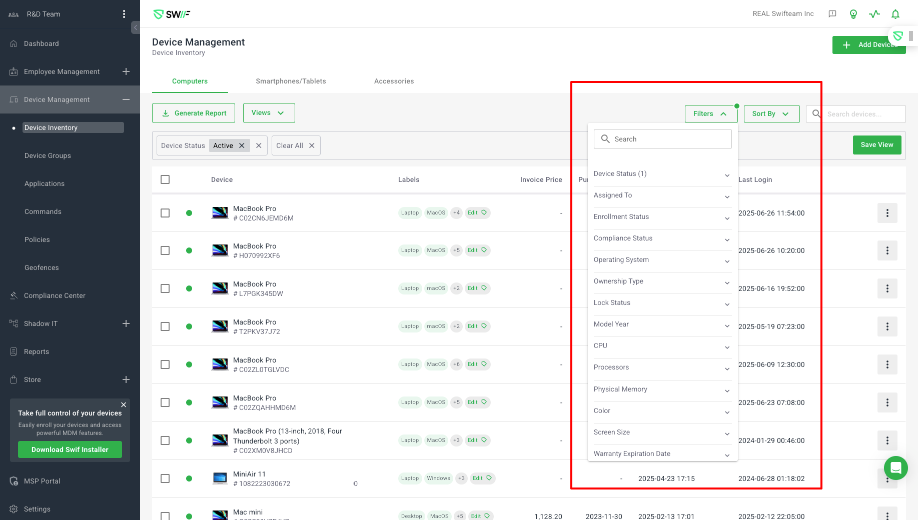 • Enhanced Filtering: Users can filter devices by various attributes such as: