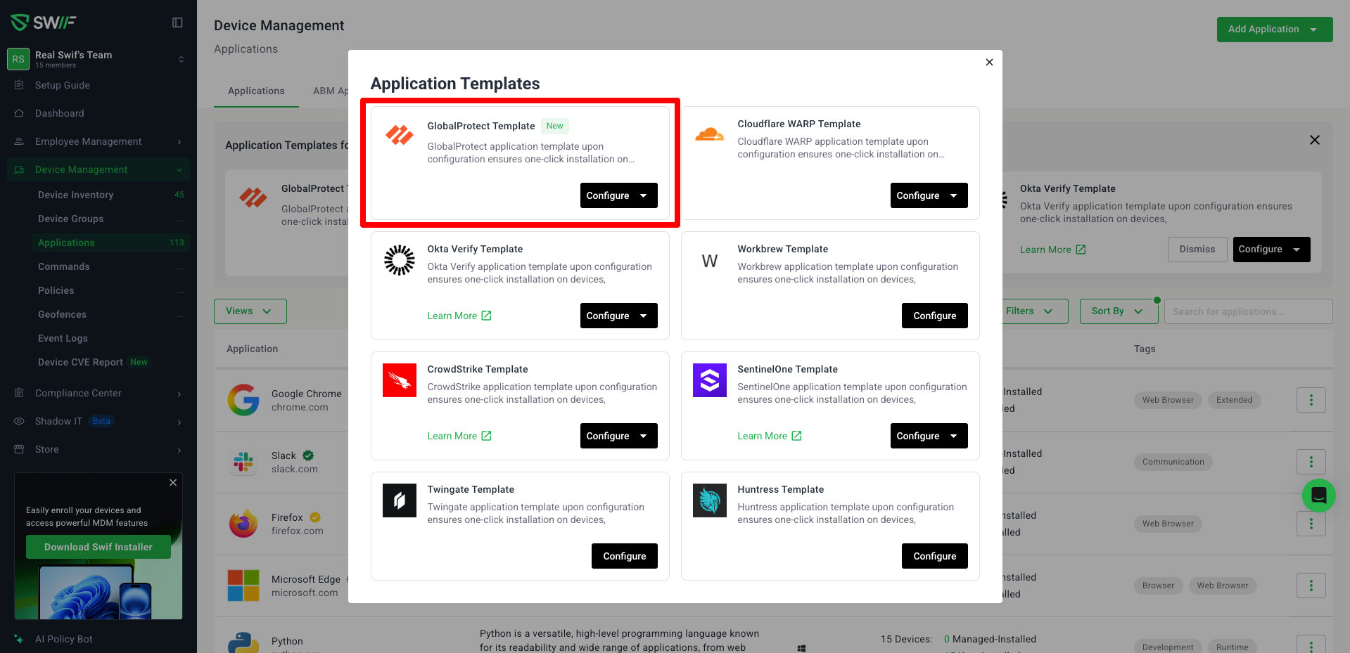 We’ve added a dedicated GlobalProtect application template to streamline VPN app setup while keeping package management fully under the customer’s control.