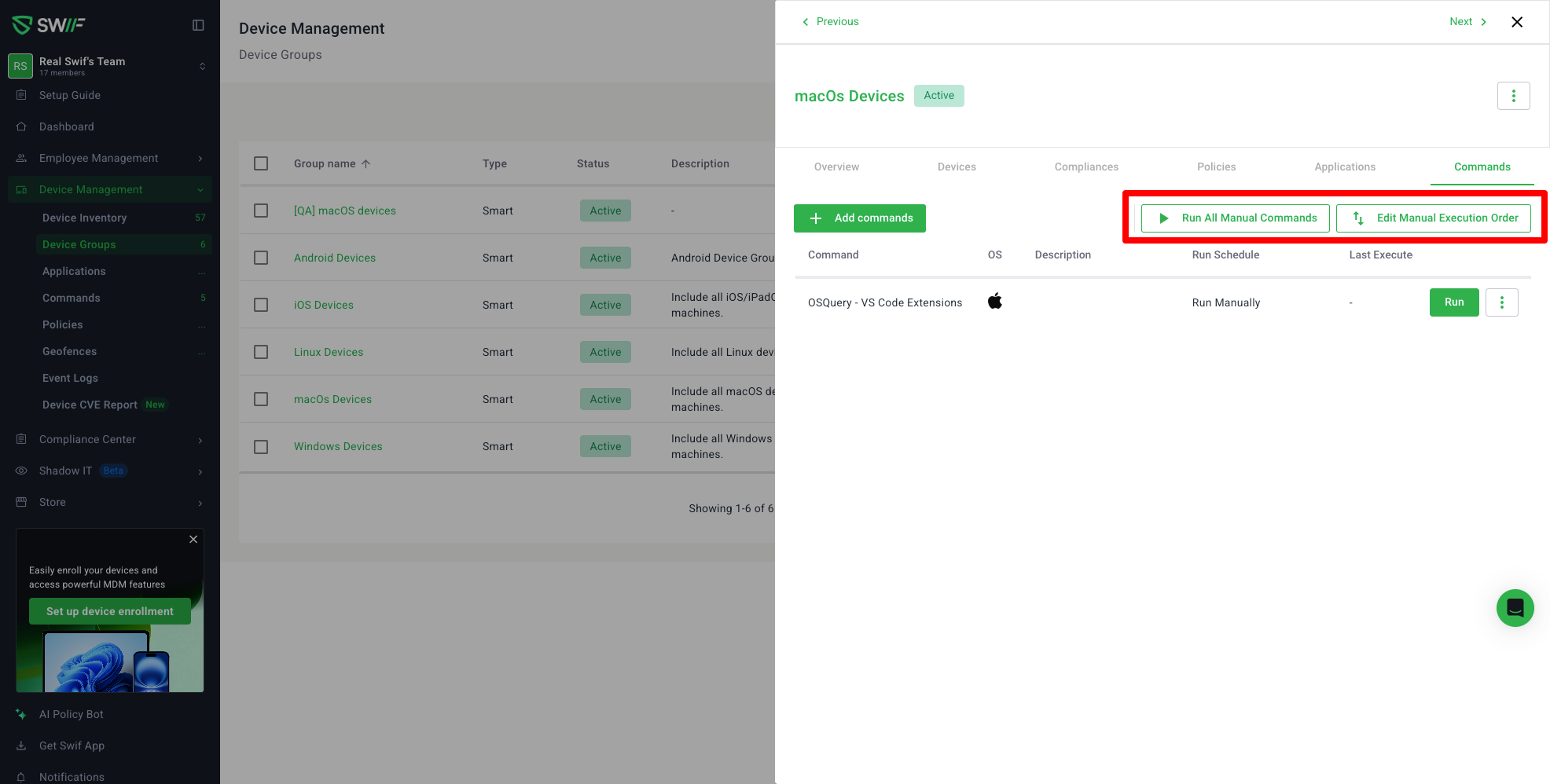 Run all manual commands on a group: Run Commands by Script, OSQuery, File, or Git Repo | Help Center | Swif.ai