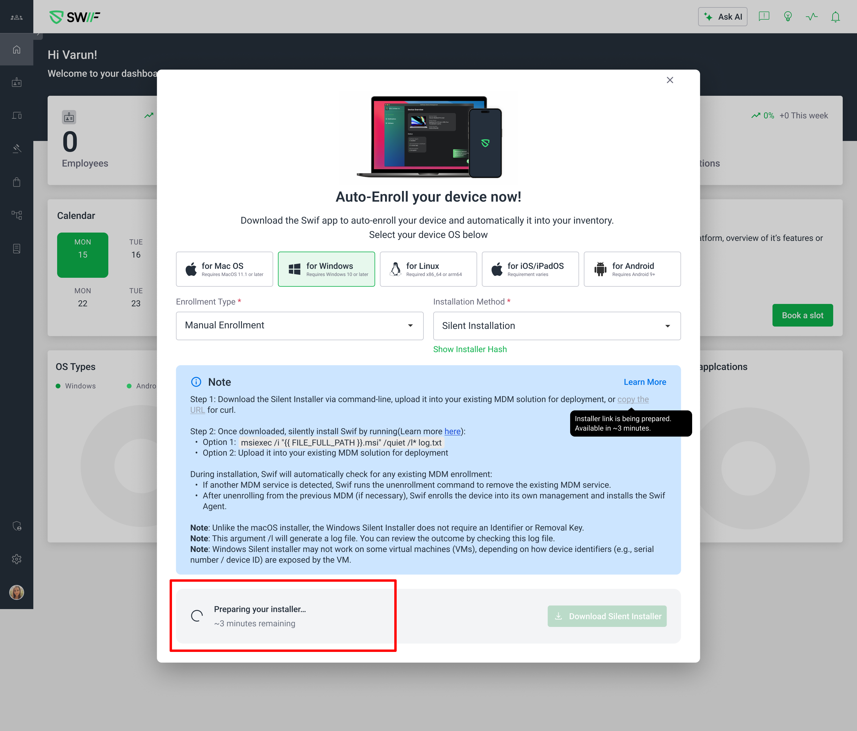 We’ve improved the Swif Webapp installer modal so new teams get clearer feedback while their installers are being prepared, and we’ve removed edge cases where an empty URL could be copied.
