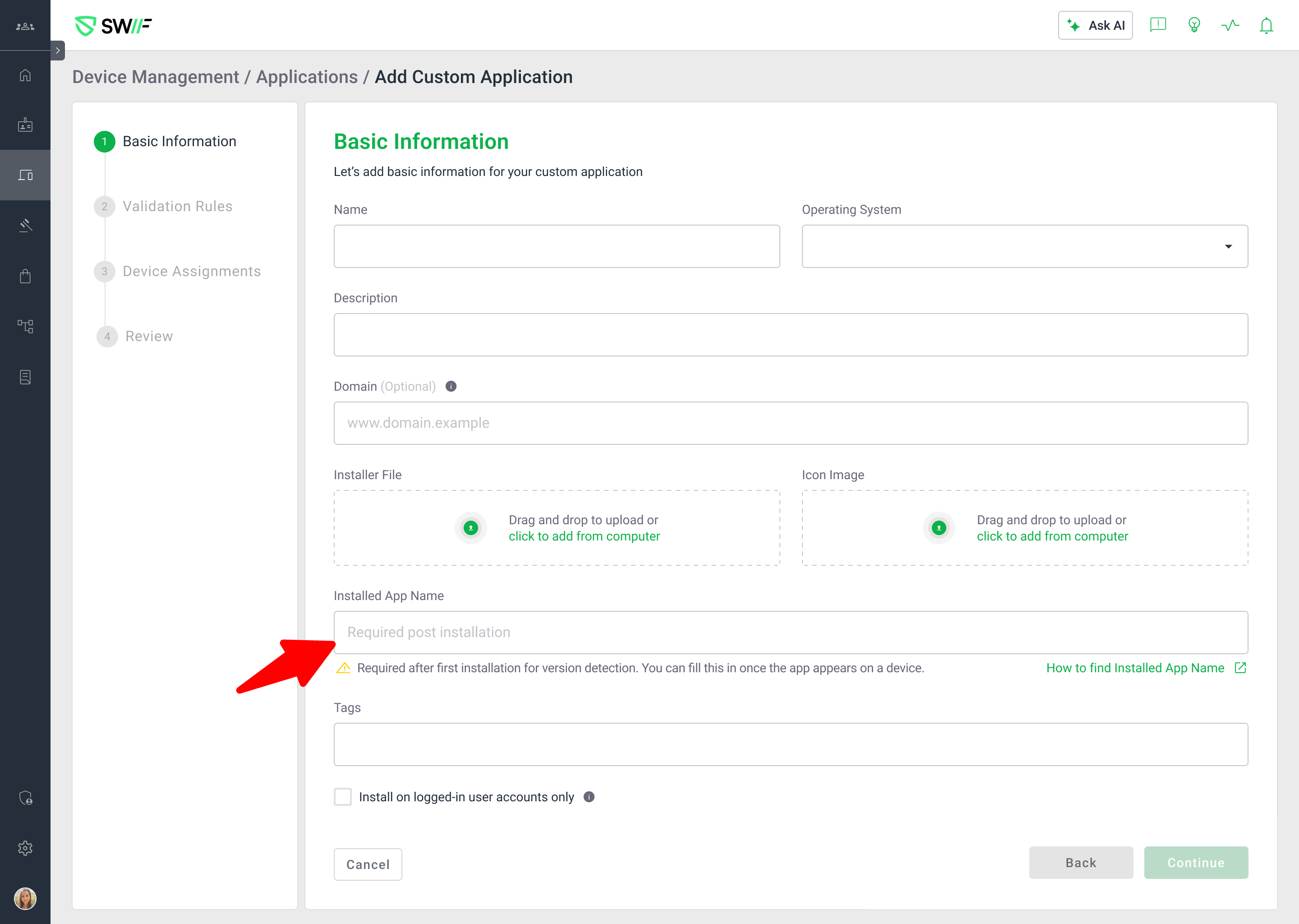 How to Find the Installed App Name for Custom Applications | Help Center | Swif