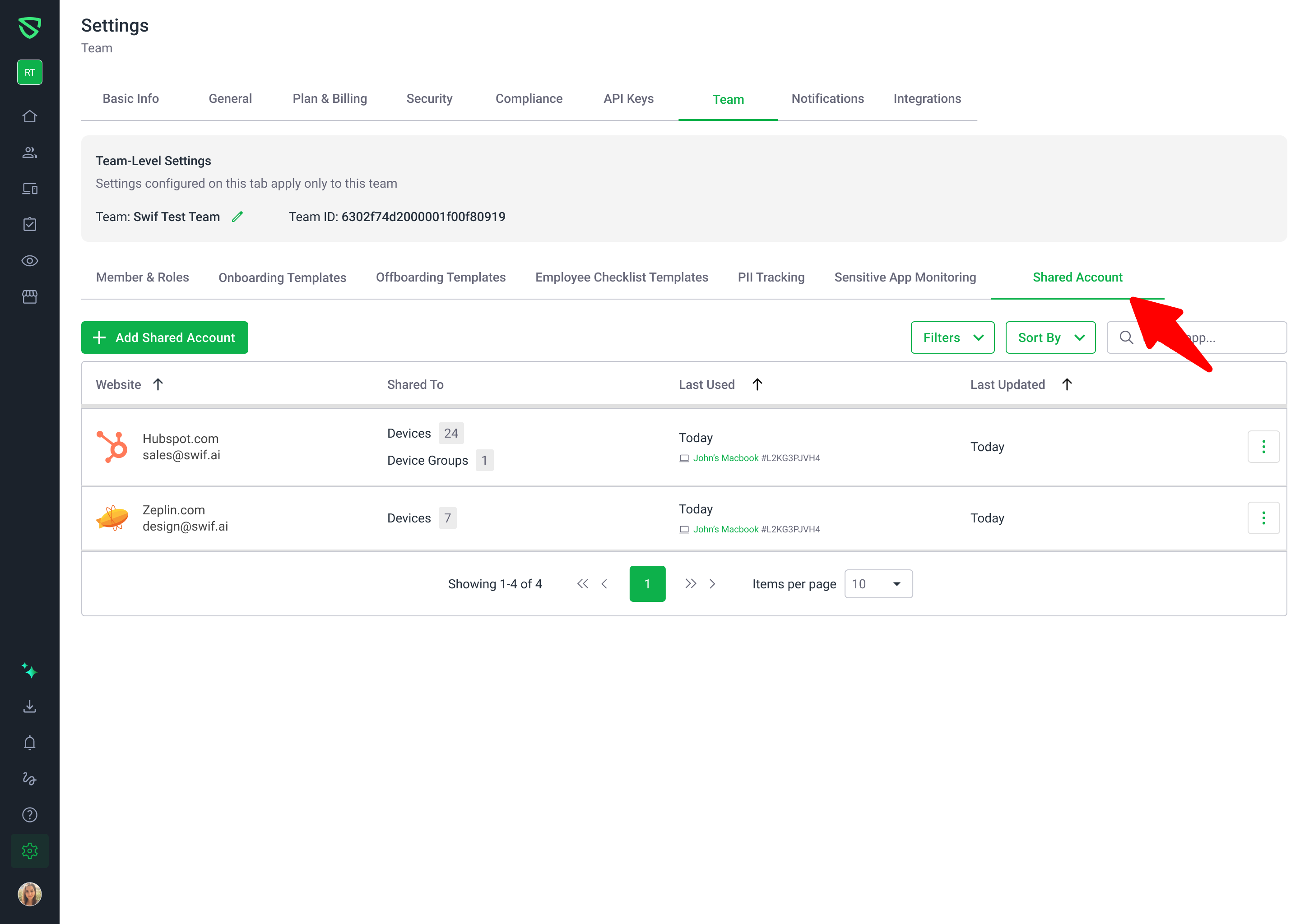 We’ve added a new Shared Password Vault management experience for Team Admins in the Swif web app, backed by the Password Vault shared-accounts APIs.