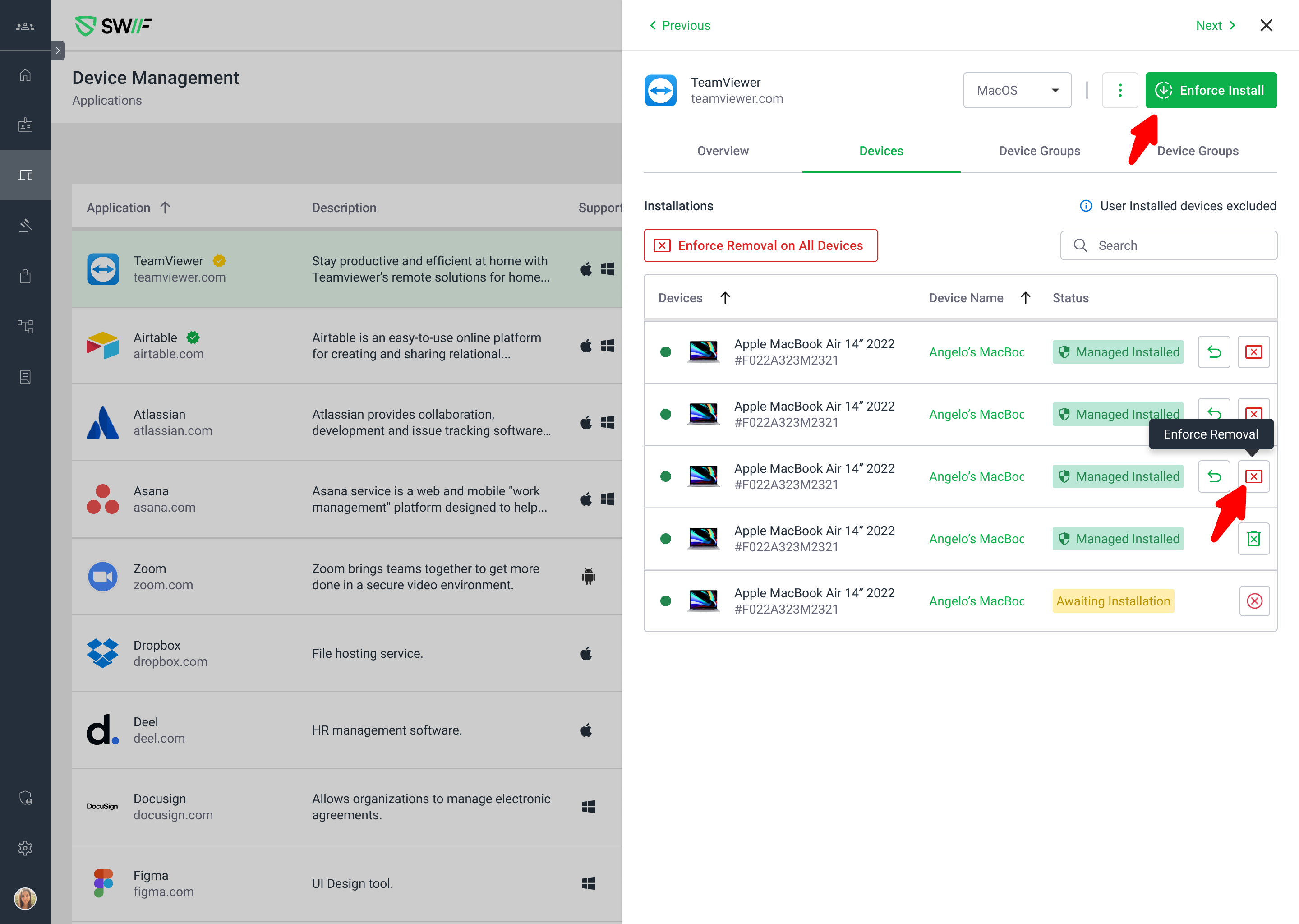 Anywhere you previously saw Disable Force Installation (for devices with a forced install), the action is now labeled Clear Enforcement.