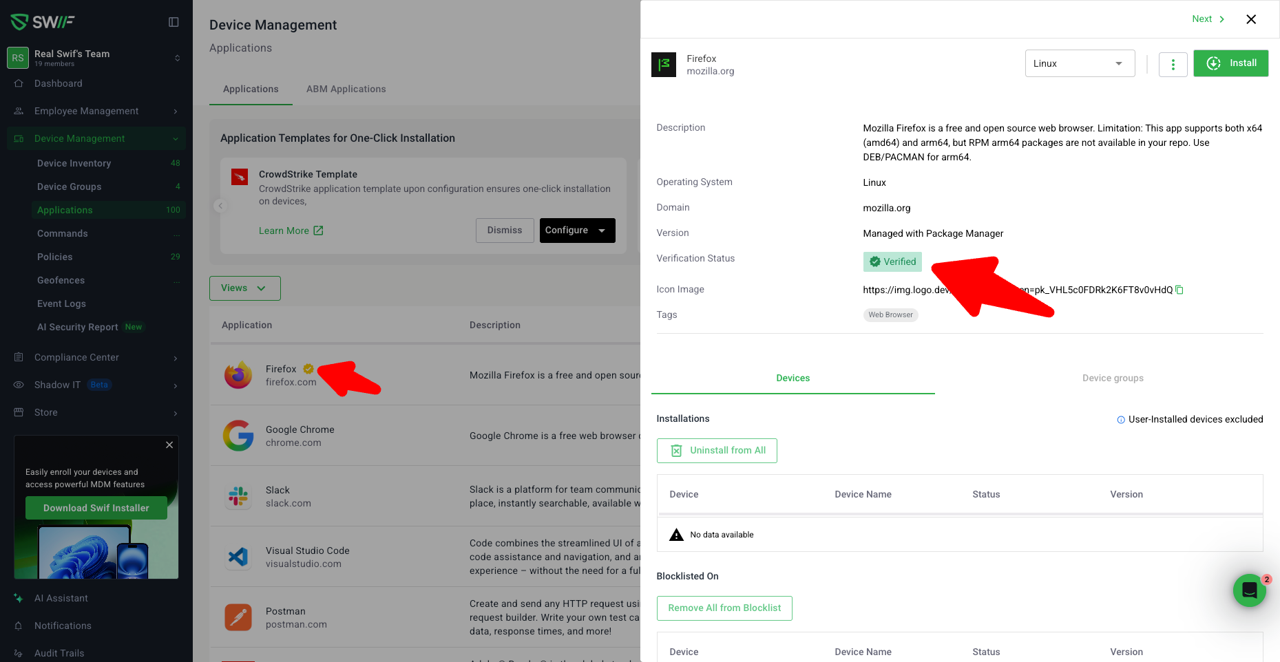 We’ve added visual “Verified” indicators across the Software Catalog and Application Details to make it easier to see which apps Swif has tested.